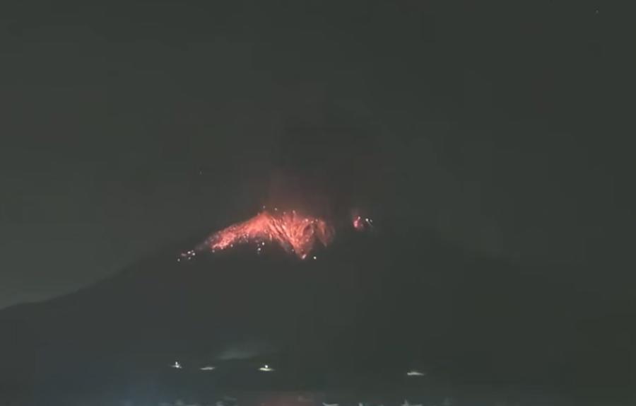第一次喷发于当地时间11月16日凌晨零点57分,火山喷烟高度达到4400米,喷发出的碎石散落在火山口附近800米至1200米范围内。