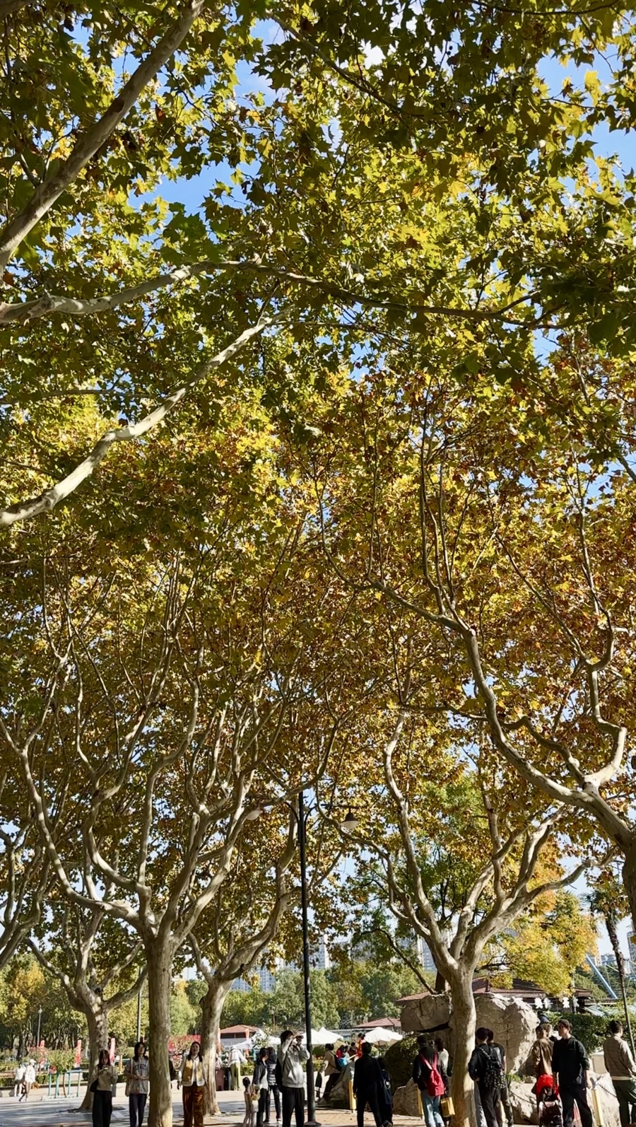 目前在上海街头,常见彩叶树种大约有银杏、法国梧桐、乌桕、水杉、朴树、榉树、落羽杉、山茱萸、重阳木等十多种,颜色从黄到橙到金到红,为秋天画下了斑斓的色彩。